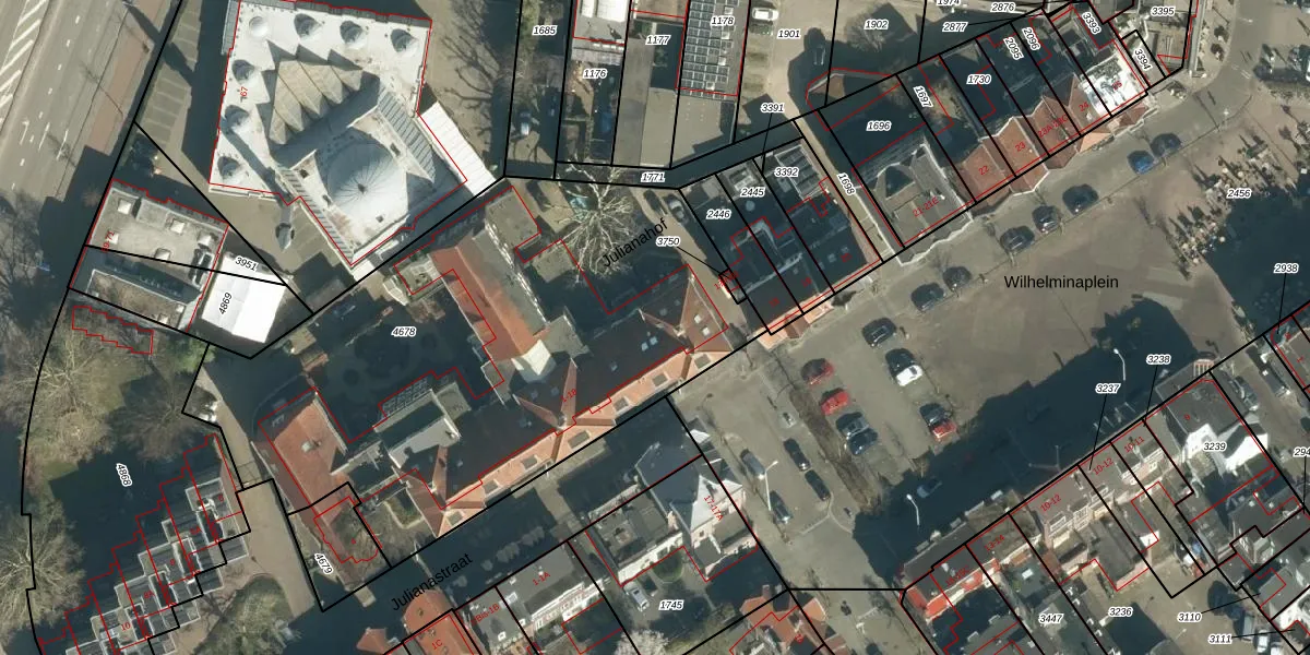 Het perceel waarop Julianahof 2 staat heeft een oppervlakte van 2867 m². Dit is een zeer groot perceel. De perceeloppervlakte wordt geregistreerd door het Kadaster. Gedetailleerde informatie over de maten van dit perceel kunt u vinden in het rapport Kadastrale kaart met maatvoering van Julianahof 2.