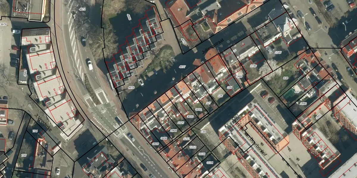 Julianastraat 7 is gelegen op kadastraal perceel GTL01D3032. Deze kadastrale aanduiding is uniek en wordt gebruikt door het Kadaster om eigendomsrechten en andere zakelijke rechten vast te leggen. Het perceel maakt onderdeel uit van de kadastrale gemeente Gestel.