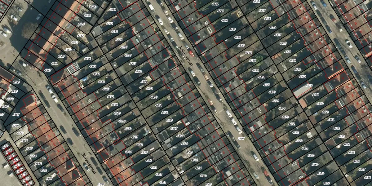 Het perceel waarop Juliusstraat 26 staat heeft een oppervlakte van 162 m². Dit is een middelgroot perceel. De perceeloppervlakte wordt geregistreerd door het Kadaster. Gedetailleerde informatie over de maten van dit perceel kunt u vinden in het rapport Kadastrale kaart met maatvoering van Juliusstraat 26.