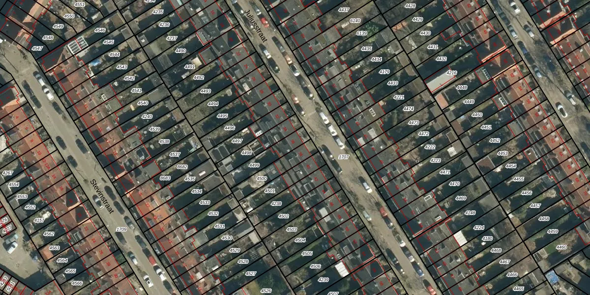 Het perceel waarop Juliusstraat 36 staat heeft een oppervlakte van 162 m². Dit is een middelgroot perceel. De perceeloppervlakte wordt geregistreerd door het Kadaster. Gedetailleerde informatie over de maten van dit perceel kunt u vinden in het rapport Kadastrale kaart met maatvoering van Juliusstraat 36.