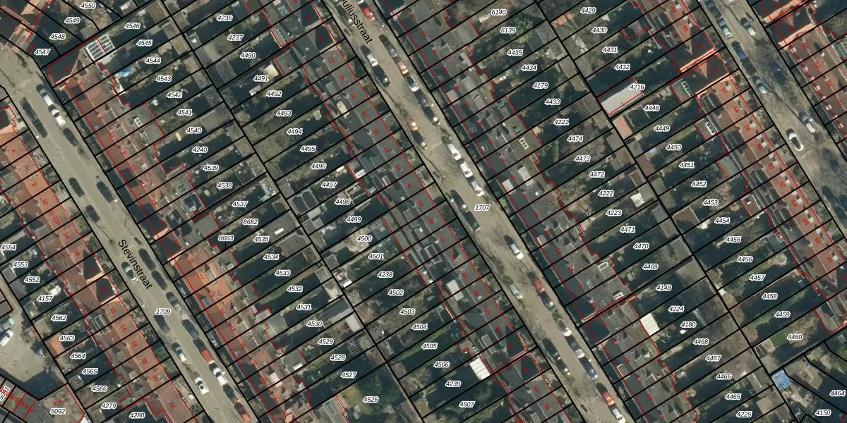 Het perceel waarop Juliusstraat 38 staat heeft een oppervlakte van 162 m². Dit is een middelgroot perceel. De perceeloppervlakte wordt geregistreerd door het Kadaster. Gedetailleerde informatie over de maten van dit perceel kunt u vinden in het rapport Kadastrale kaart met maatvoering van Juliusstraat 38.