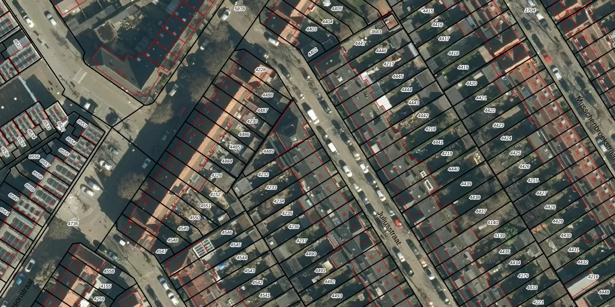 Juliusstraat 6 is gelegen op kadastraal perceel WSL01G4232. Deze kadastrale aanduiding is uniek en wordt gebruikt door het Kadaster om eigendomsrechten en andere zakelijke rechten vast te leggen. Het perceel maakt onderdeel uit van de kadastrale gemeente Woensel.
