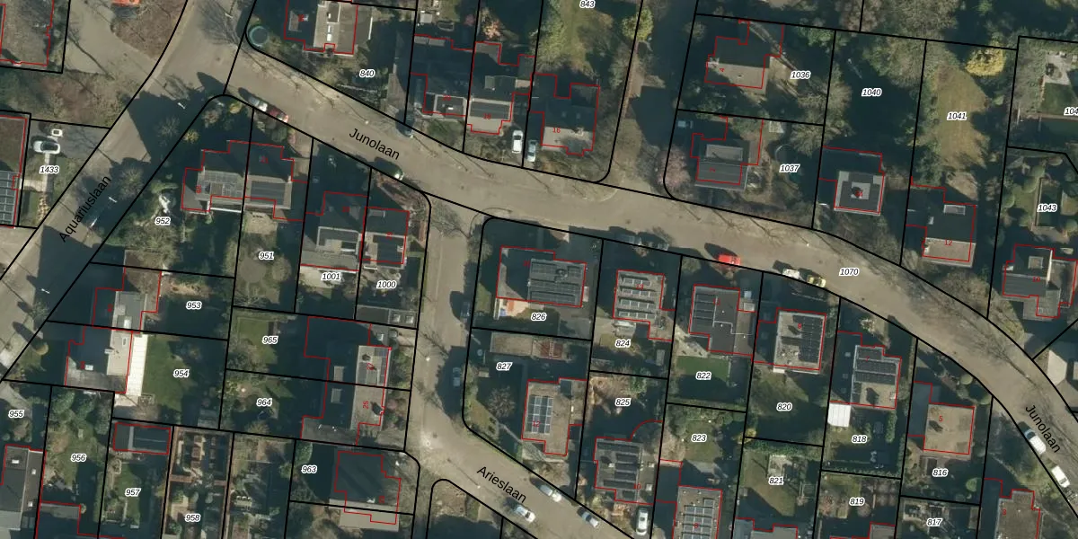 Het perceel waarop Junolaan 15 staat heeft een oppervlakte van 445 m². Dit is een groot perceel. De perceeloppervlakte wordt geregistreerd door het Kadaster. Gedetailleerde informatie over de maten van dit perceel kunt u vinden in het rapport Kadastrale kaart met maatvoering van Junolaan 15.