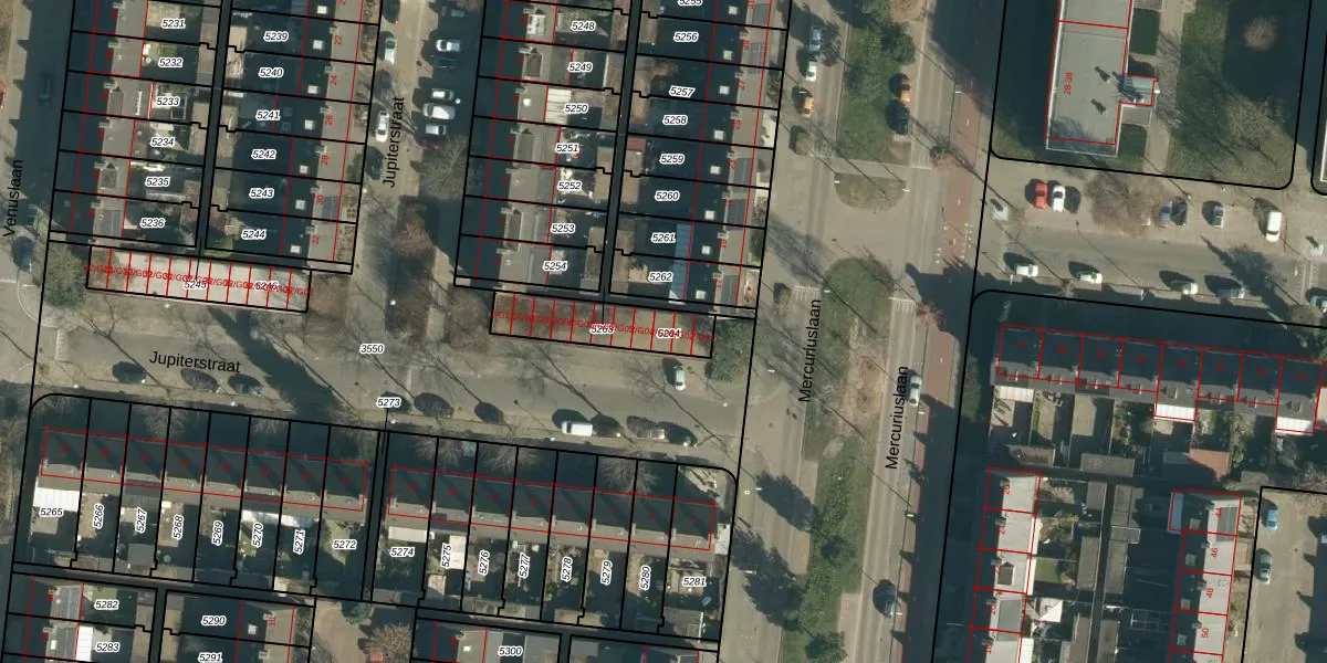 Jupiterstraat 2-G03 is gelegen op kadastraal perceel WSL01L5264. Deze kadastrale aanduiding is uniek en wordt gebruikt door het Kadaster om eigendomsrechten en andere zakelijke rechten vast te leggen. Het perceel maakt onderdeel uit van de kadastrale gemeente Woensel.