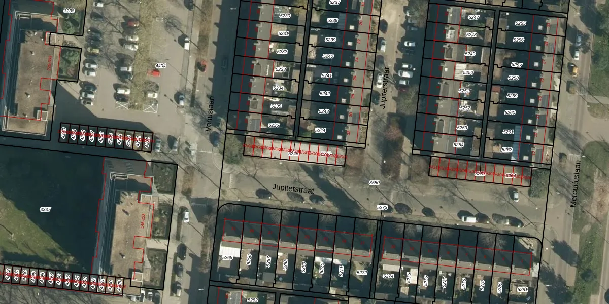 Jupiterstraat 32-G05 is gelegen op kadastraal perceel WSL01L5246. Deze kadastrale aanduiding is uniek en wordt gebruikt door het Kadaster om eigendomsrechten en andere zakelijke rechten vast te leggen. Het perceel maakt onderdeel uit van de kadastrale gemeente Woensel.