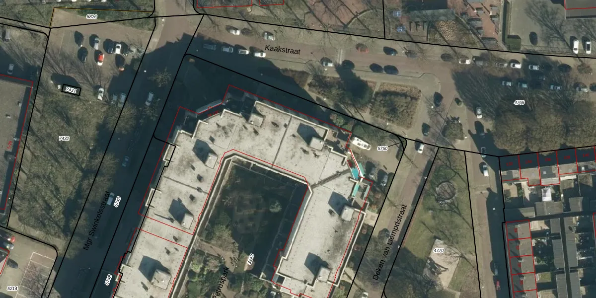 Kaakstraat 116 is gelegen op kadastraal perceel WSL01G3243. Deze kadastrale aanduiding is uniek en wordt gebruikt door het Kadaster om eigendomsrechten en andere zakelijke rechten vast te leggen. Het perceel maakt onderdeel uit van de kadastrale gemeente Woensel.