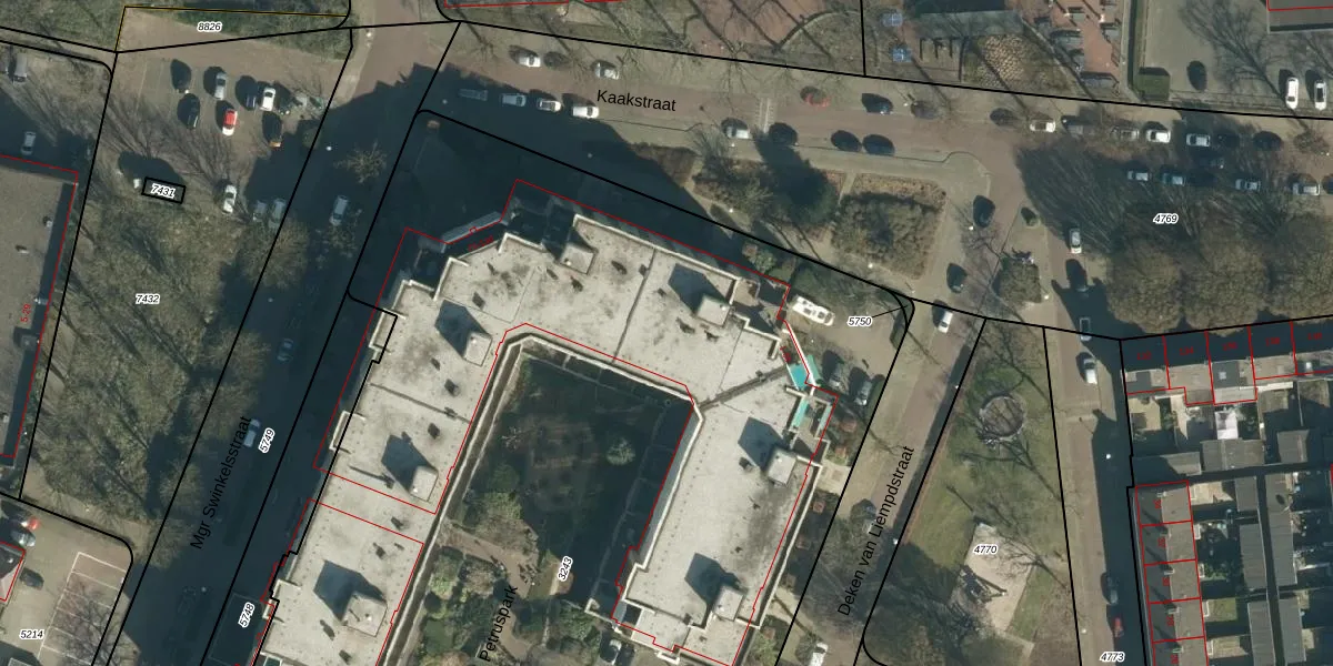Kaakstraat 118 is gelegen op kadastraal perceel WSL01G3243. Deze kadastrale aanduiding is uniek en wordt gebruikt door het Kadaster om eigendomsrechten en andere zakelijke rechten vast te leggen. Het perceel maakt onderdeel uit van de kadastrale gemeente Woensel.