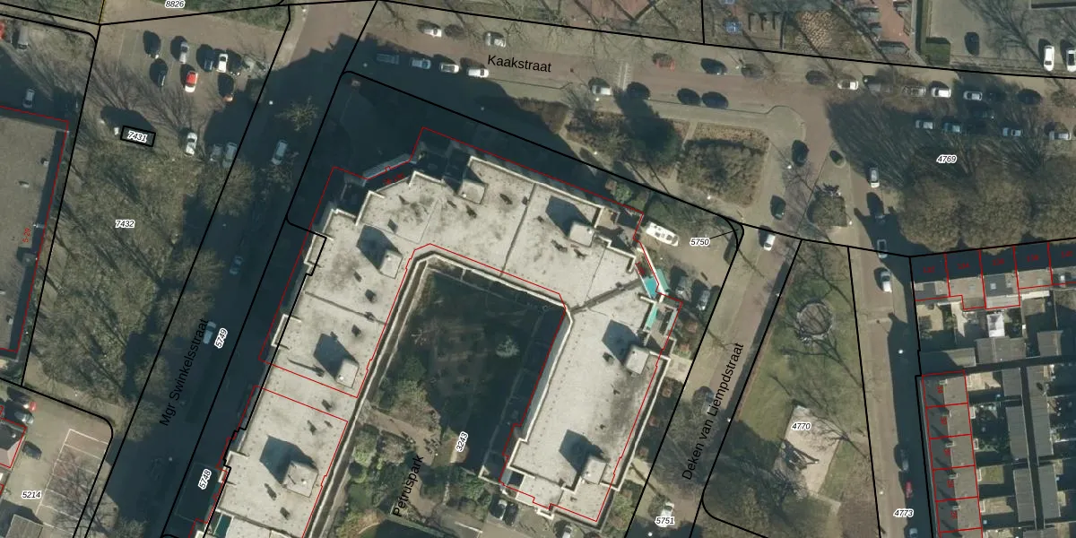 Kaakstraat 122 is gelegen op kadastraal perceel WSL01G3243. Deze kadastrale aanduiding is uniek en wordt gebruikt door het Kadaster om eigendomsrechten en andere zakelijke rechten vast te leggen. Het perceel maakt onderdeel uit van de kadastrale gemeente Woensel.