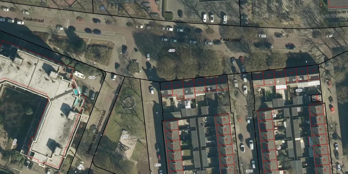 Kaakstraat 134 is gelegen op kadastraal perceel WSL01G3684. Deze kadastrale aanduiding is uniek en wordt gebruikt door het Kadaster om eigendomsrechten en andere zakelijke rechten vast te leggen. Het perceel maakt onderdeel uit van de kadastrale gemeente Woensel.