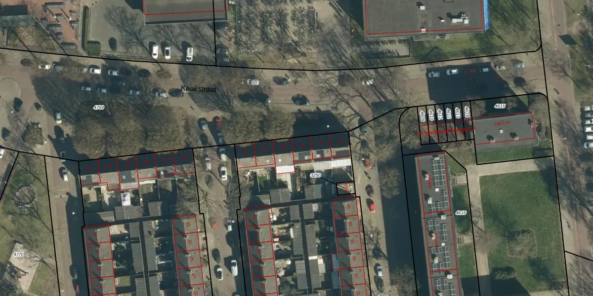 Kaakstraat 150 is gelegen op kadastraal perceel WSL01G3686. Deze kadastrale aanduiding is uniek en wordt gebruikt door het Kadaster om eigendomsrechten en andere zakelijke rechten vast te leggen. Het perceel maakt onderdeel uit van de kadastrale gemeente Woensel.