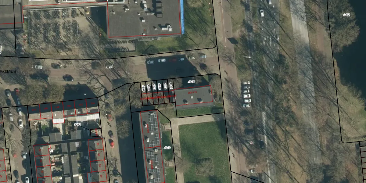 Kaakstraat 156 is gelegen op kadastraal perceel WSL01G4615. Deze kadastrale aanduiding is uniek en wordt gebruikt door het Kadaster om eigendomsrechten en andere zakelijke rechten vast te leggen. Het perceel maakt onderdeel uit van de kadastrale gemeente Woensel.