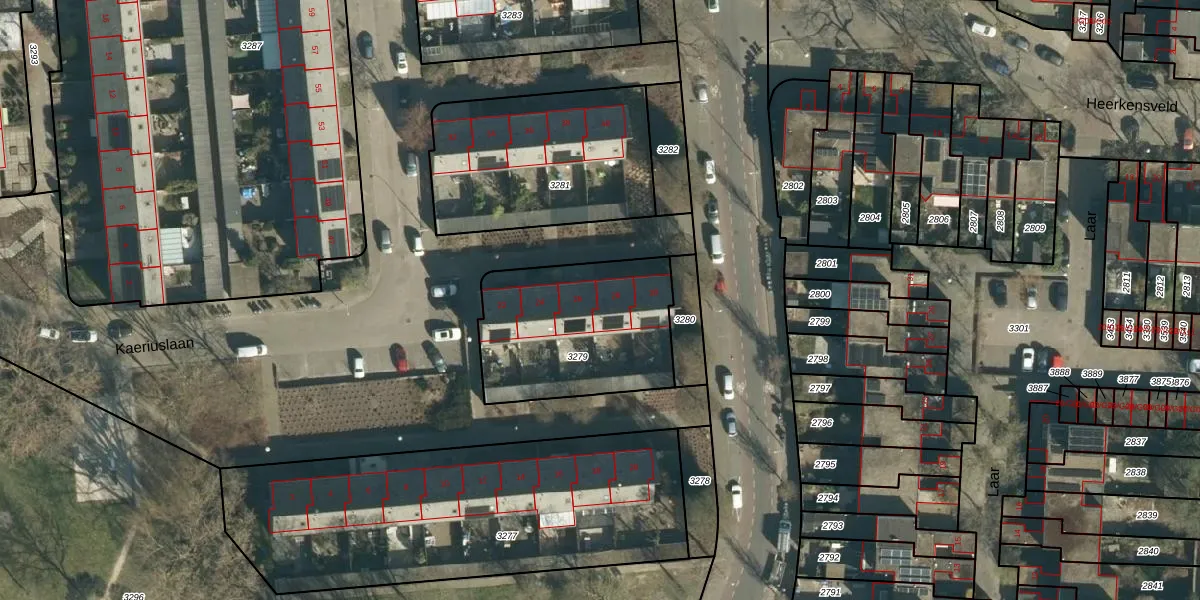 Kaeriuslaan 28 is gelegen op kadastraal perceel TGR00C3279. Deze kadastrale aanduiding is uniek en wordt gebruikt door het Kadaster om eigendomsrechten en andere zakelijke rechten vast te leggen. Het perceel maakt onderdeel uit van de kadastrale gemeente Tongelre.