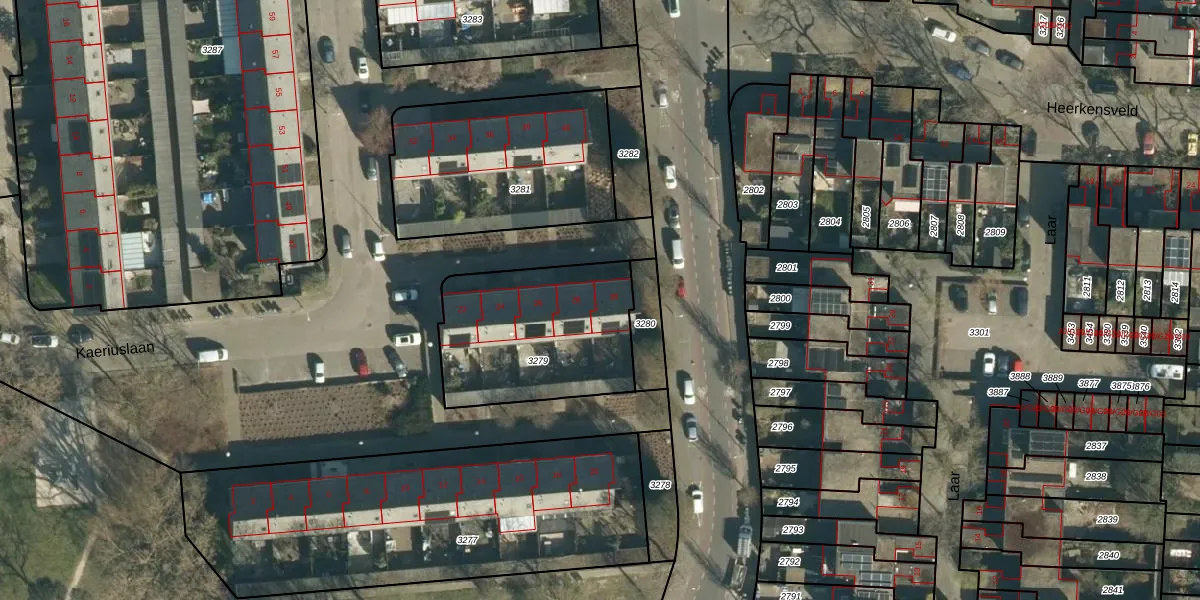 Kaeriuslaan 30 is gelegen op kadastraal perceel TGR00C3279. Deze kadastrale aanduiding is uniek en wordt gebruikt door het Kadaster om eigendomsrechten en andere zakelijke rechten vast te leggen. Het perceel maakt onderdeel uit van de kadastrale gemeente Tongelre.