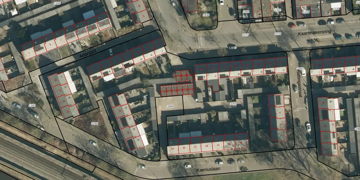 Het perceel waarop Kaeriuslaan 31-G04 staat heeft een oppervlakte van 6574 m². Dit is een zeer groot perceel. De perceeloppervlakte wordt geregistreerd door het Kadaster. Gedetailleerde informatie over de maten van dit perceel kunt u vinden in het rapport Kadastrale kaart met maatvoering van Kaeriuslaan 31-G04.
