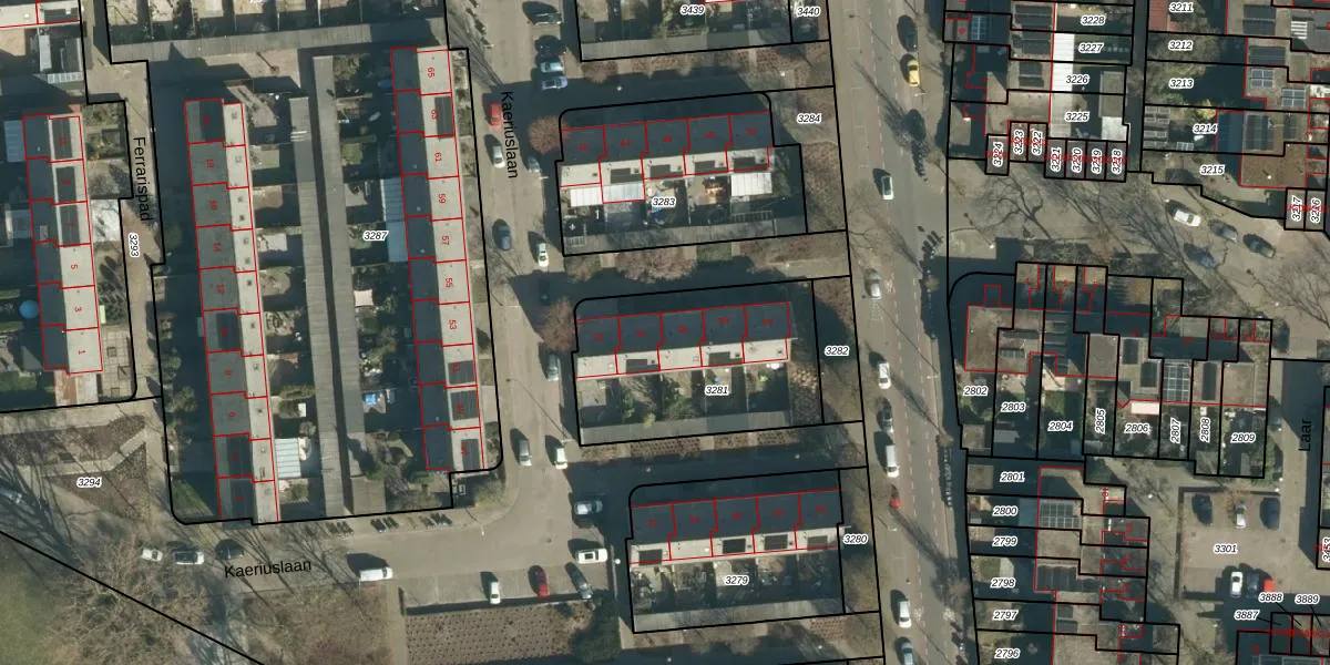 Kaeriuslaan 36 is gelegen op kadastraal perceel TGR00C3281. Deze kadastrale aanduiding is uniek en wordt gebruikt door het Kadaster om eigendomsrechten en andere zakelijke rechten vast te leggen. Het perceel maakt onderdeel uit van de kadastrale gemeente Tongelre.