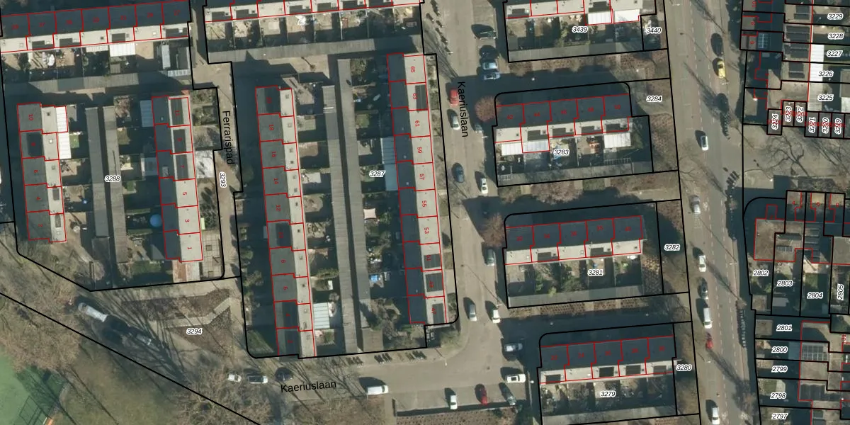 Kaeriuslaan 55 is gelegen op kadastraal perceel TGR00C3287. Deze kadastrale aanduiding is uniek en wordt gebruikt door het Kadaster om eigendomsrechten en andere zakelijke rechten vast te leggen. Het perceel maakt onderdeel uit van de kadastrale gemeente Tongelre.