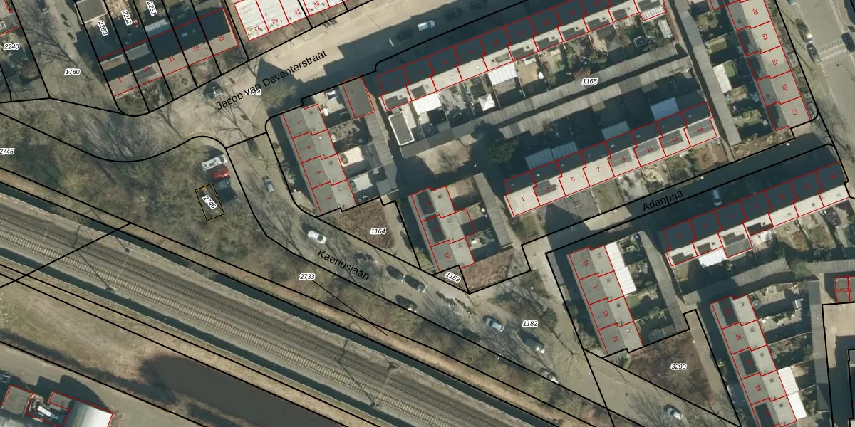 Het perceel waarop Kaeriuslaan 9 staat heeft een oppervlakte van 5940 m². Dit is een zeer groot perceel. De perceeloppervlakte wordt geregistreerd door het Kadaster. Gedetailleerde informatie over de maten van dit perceel kunt u vinden in het rapport Kadastrale kaart met maatvoering van Kaeriuslaan 9.