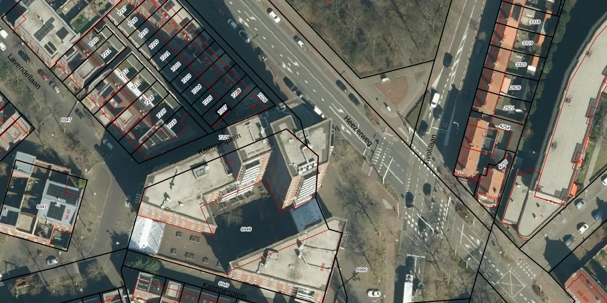 Het perceel waarop Kalmoesplein 14 staat heeft een oppervlakte van 2519 m². Dit is een zeer groot perceel. De perceeloppervlakte wordt geregistreerd door het Kadaster. Gedetailleerde informatie over de maten van dit perceel kunt u vinden in het rapport Kadastrale kaart met maatvoering van Kalmoesplein 14.