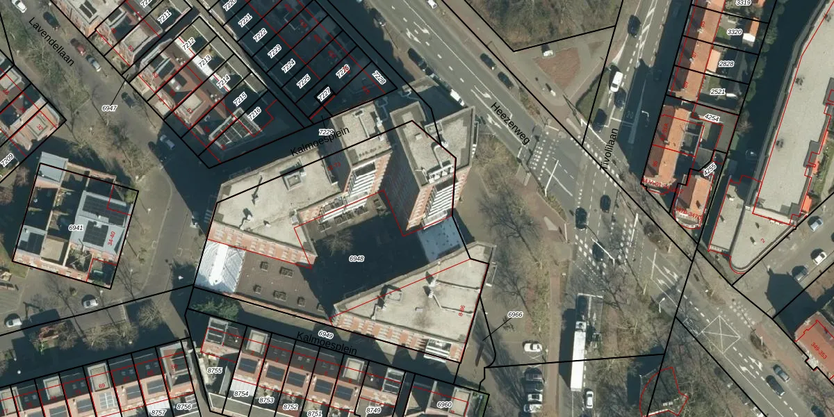 Het perceel waarop Kalmoesplein 21 staat heeft een oppervlakte van 2519 m². Dit is een zeer groot perceel. De perceeloppervlakte wordt geregistreerd door het Kadaster. Gedetailleerde informatie over de maten van dit perceel kunt u vinden in het rapport Kadastrale kaart met maatvoering van Kalmoesplein 21.