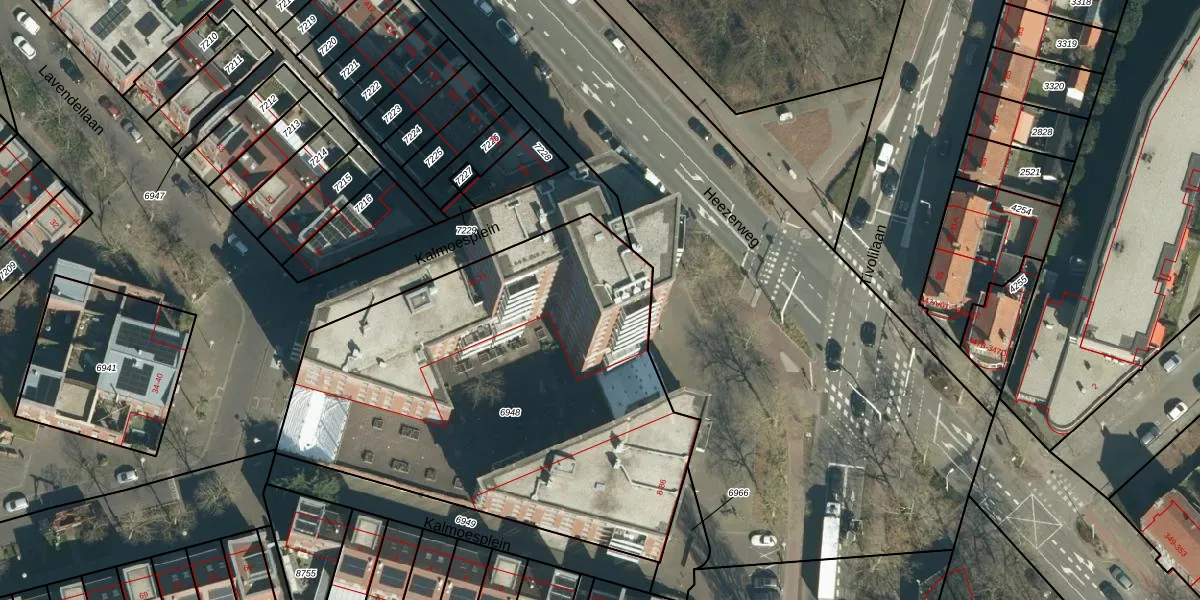 Het perceel waarop Kalmoesplein 46 staat heeft een oppervlakte van 2519 m². Dit is een zeer groot perceel. De perceeloppervlakte wordt geregistreerd door het Kadaster. Gedetailleerde informatie over de maten van dit perceel kunt u vinden in het rapport Kadastrale kaart met maatvoering van Kalmoesplein 46.