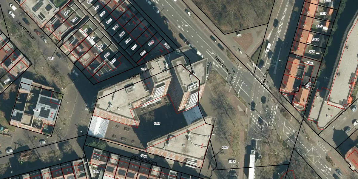 Het perceel waarop Kalmoesplein 47 staat heeft een oppervlakte van 2519 m². Dit is een zeer groot perceel. De perceeloppervlakte wordt geregistreerd door het Kadaster. Gedetailleerde informatie over de maten van dit perceel kunt u vinden in het rapport Kadastrale kaart met maatvoering van Kalmoesplein 47.
