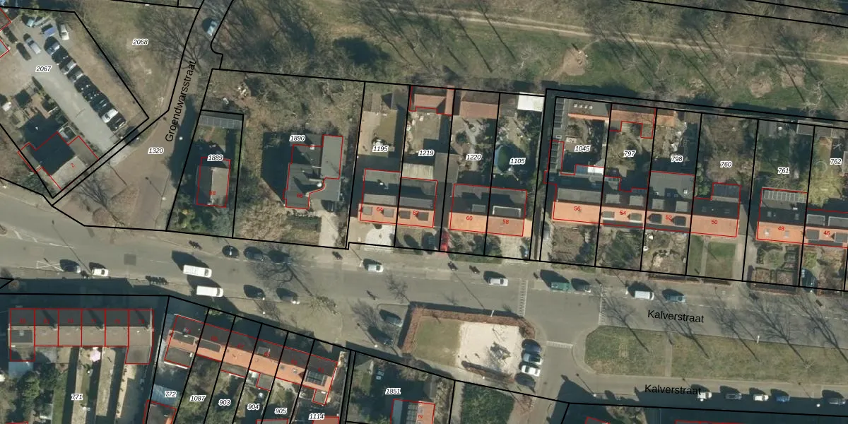 Kalverstraat 62 is gelegen op kadastraal perceel TGR00F1219. Deze kadastrale aanduiding is uniek en wordt gebruikt door het Kadaster om eigendomsrechten en andere zakelijke rechten vast te leggen. Het perceel maakt onderdeel uit van de kadastrale gemeente Tongelre.