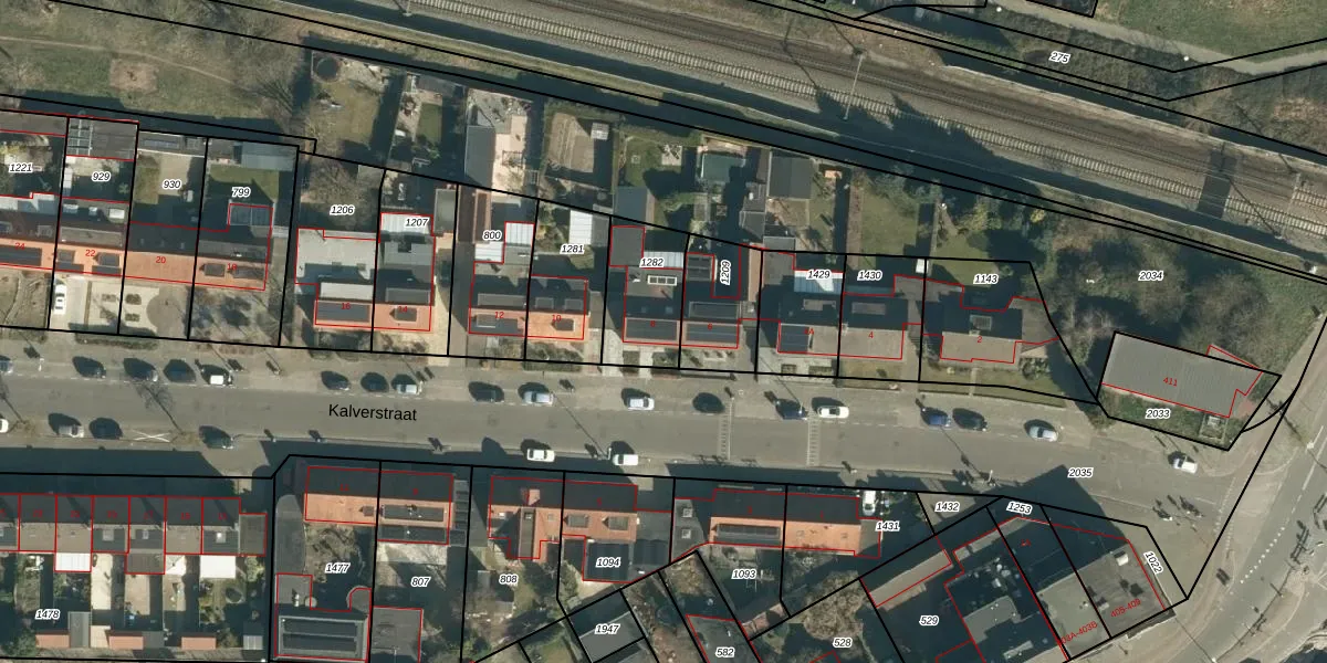 Gebruik de zoekbalk of klik op een perceel voor informatie over de adressen binnen dit perceel.