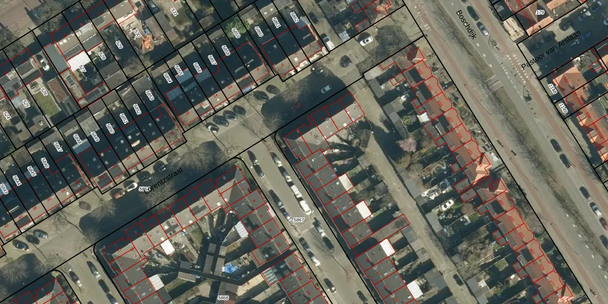 Het adres is gelegen op perceel 7580 in de sectie G en de kadastrale gemeente Woensel. De kadastrale aanduiding is aldus WSL01-G-7580. Het perceel is met 9005 m² relatief groot. Het gemiddelde ligt in de kadastrale gemeente Woensel op 1038,95 m². Het kleinste perceel in de kadastrale gemeente is 0 m² groot. De grootste perceeloppervlakte is 74,9 ha. Op het perceel liggen in totaal 53 adressen. De huidige grenzen van het perceel zijn digitaal in de Basisregistratie Kadaster (BRK) geregistreerd op 03-02-2020.