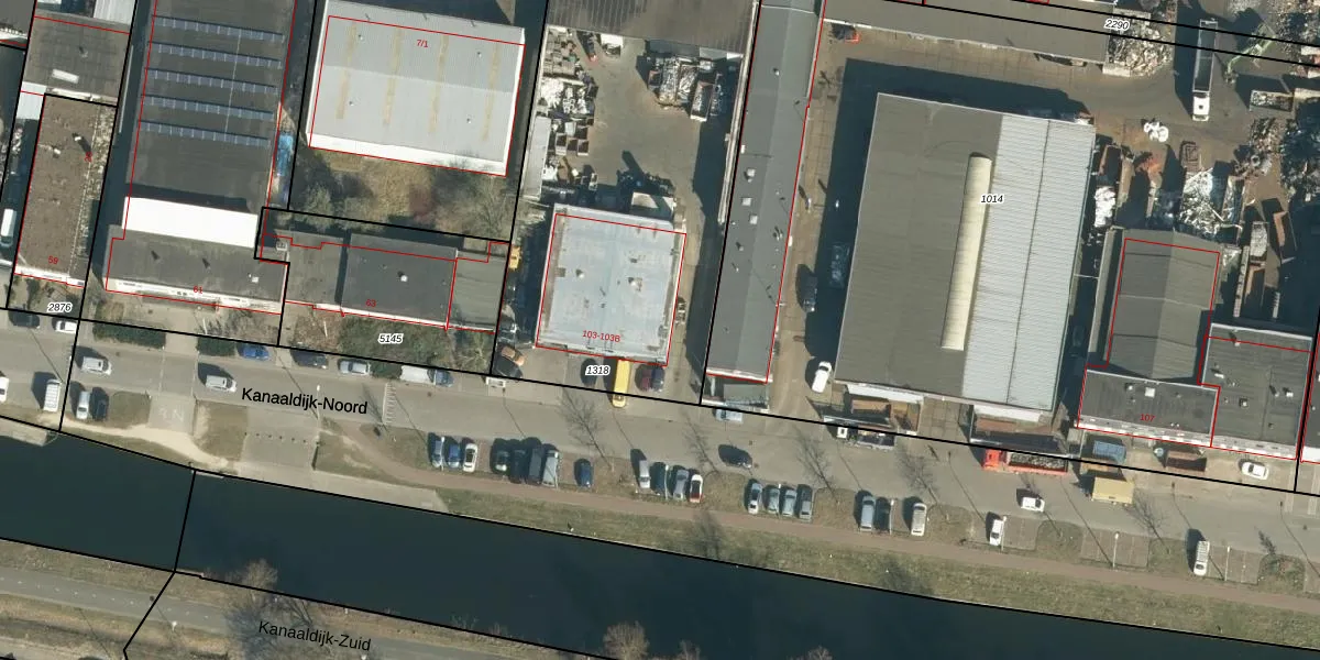 Kanaaldijk-Noord 103-B is gelegen op kadastraal perceel TGR00E1318. Deze kadastrale aanduiding is uniek en wordt gebruikt door het Kadaster om eigendomsrechten en andere zakelijke rechten vast te leggen. Het perceel maakt onderdeel uit van de kadastrale gemeente Tongelre.