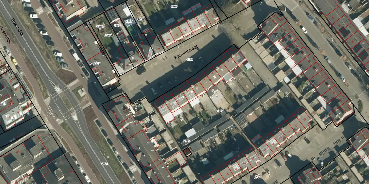 Kaneelstraat 13 is gelegen op kadastraal perceel WSL01G6083. Deze kadastrale aanduiding is uniek en wordt gebruikt door het Kadaster om eigendomsrechten en andere zakelijke rechten vast te leggen. Het perceel maakt onderdeel uit van de kadastrale gemeente Woensel.