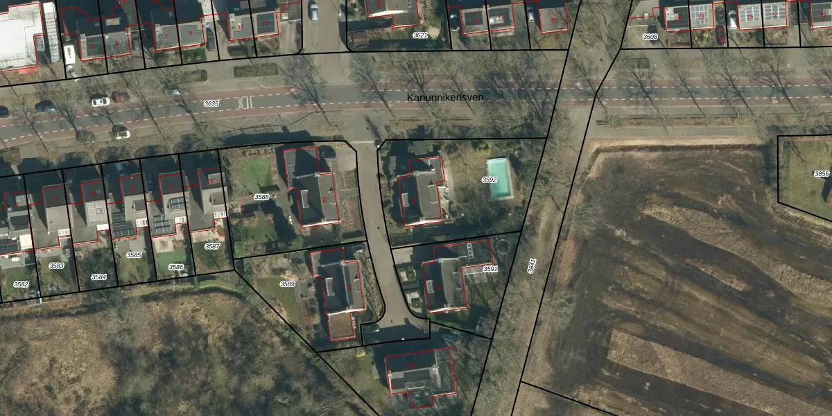 Kanunnikensven 32 is gelegen op kadastraal perceel STM00F3592. Deze kadastrale aanduiding is uniek en wordt gebruikt door het Kadaster om eigendomsrechten en andere zakelijke rechten vast te leggen. Het perceel maakt onderdeel uit van de kadastrale gemeente Stratum.