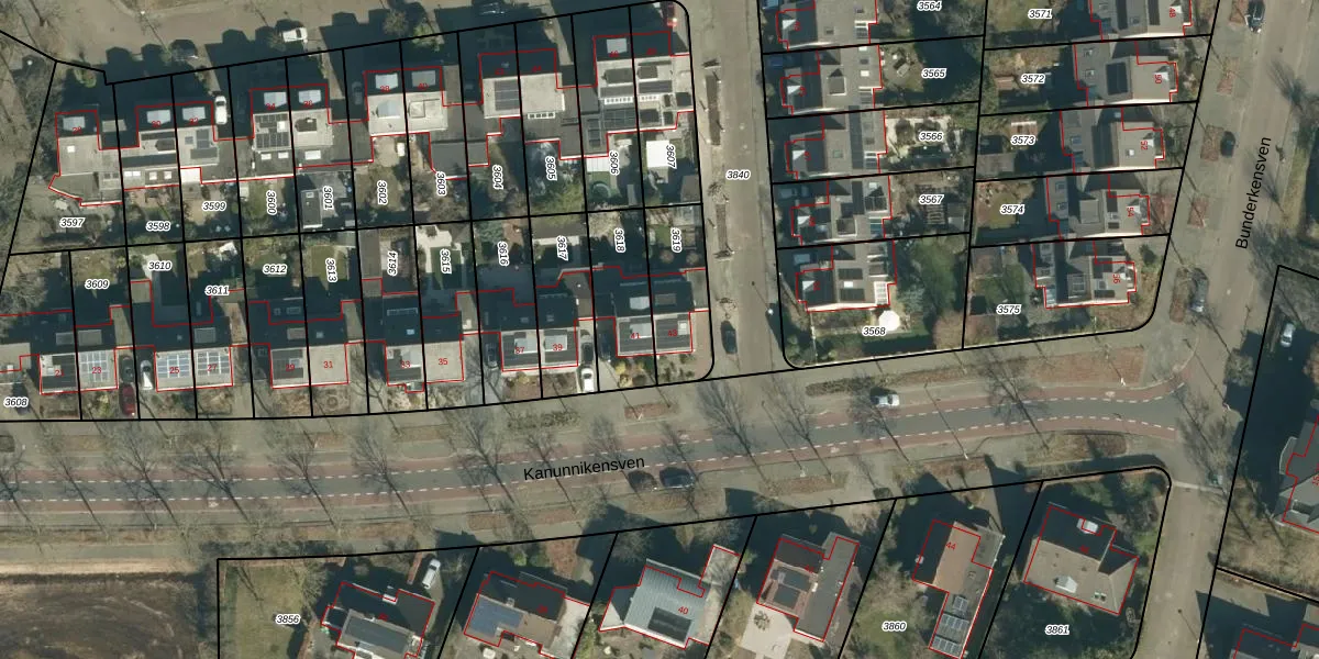 Kanunnikensven 43 is gelegen op kadastraal perceel STM00F3619. Deze kadastrale aanduiding is uniek en wordt gebruikt door het Kadaster om eigendomsrechten en andere zakelijke rechten vast te leggen. Het perceel maakt onderdeel uit van de kadastrale gemeente Stratum.