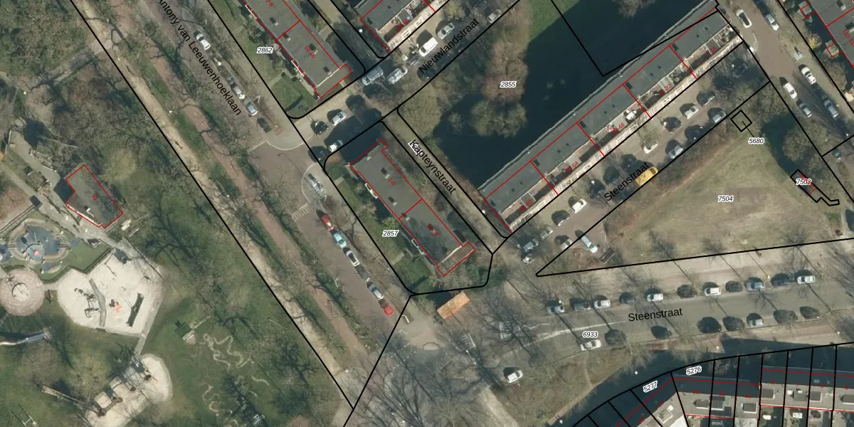 Het perceel waarop Kapteynstraat 10 staat heeft een oppervlakte van 815 m². Dit is een groot perceel. De perceeloppervlakte wordt geregistreerd door het Kadaster. Gedetailleerde informatie over de maten van dit perceel kunt u vinden in het rapport Kadastrale kaart met maatvoering van Kapteynstraat 10.