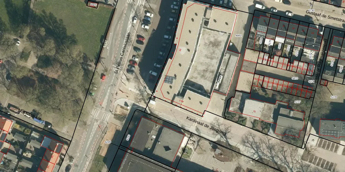 Kardinaal de Jongweg 1 is gelegen op kadastraal perceel STM00E4991. Deze kadastrale aanduiding is uniek en wordt gebruikt door het Kadaster om eigendomsrechten en andere zakelijke rechten vast te leggen. Het perceel maakt onderdeel uit van de kadastrale gemeente Stratum.