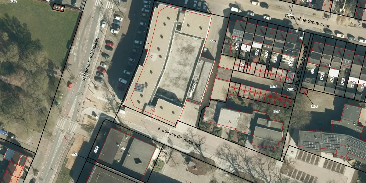Kardinaal de Jongweg 23 is gelegen op kadastraal perceel STM00E4991. Deze kadastrale aanduiding is uniek en wordt gebruikt door het Kadaster om eigendomsrechten en andere zakelijke rechten vast te leggen. Het perceel maakt onderdeel uit van de kadastrale gemeente Stratum.