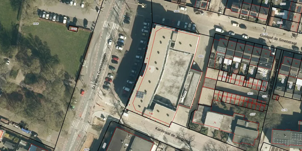 Het adres is gelegen op perceel 4991 in de sectie E en de kadastrale gemeente Stratum. De kadastrale aanduiding is aldus STM00-E-4991. Het perceel is met 2862 m² relatief groot. Het gemiddelde ligt in de kadastrale gemeente Stratum op 909,21 m². Het grootste perceel in de kadastrale gemeente is 92,9 ha. Het kleinste perceel heeft een oppervlakte van 0 m². Op het perceel zijn 36 adressen aanwezig. De huidige grenzen van het perceel zijn digitaal in de Basisregistratie Kadaster (BRK) geregistreerd op 17-07-2006.