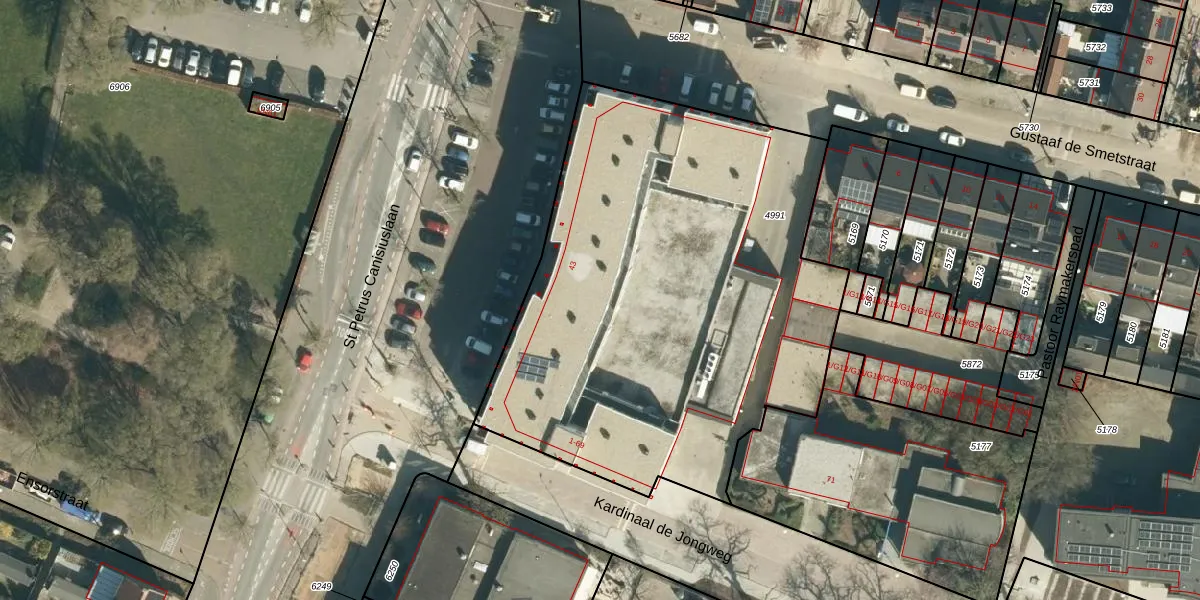 Het perceel waarop Kardinaal de Jongweg 27 staat heeft een oppervlakte van 2862 m². Dit is een zeer groot perceel. De perceeloppervlakte wordt geregistreerd door het Kadaster. Gedetailleerde informatie over de maten van dit perceel kunt u vinden in het rapport Kadastrale kaart met maatvoering van Kardinaal de Jongweg 27.
