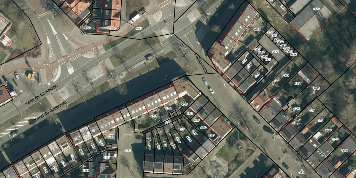 Karel de Grotelaan 1-A is gelegen op kadastraal perceel GTL01D4797. Deze kadastrale aanduiding is uniek en wordt gebruikt door het Kadaster om eigendomsrechten en andere zakelijke rechten vast te leggen. Het perceel maakt onderdeel uit van de kadastrale gemeente Gestel.