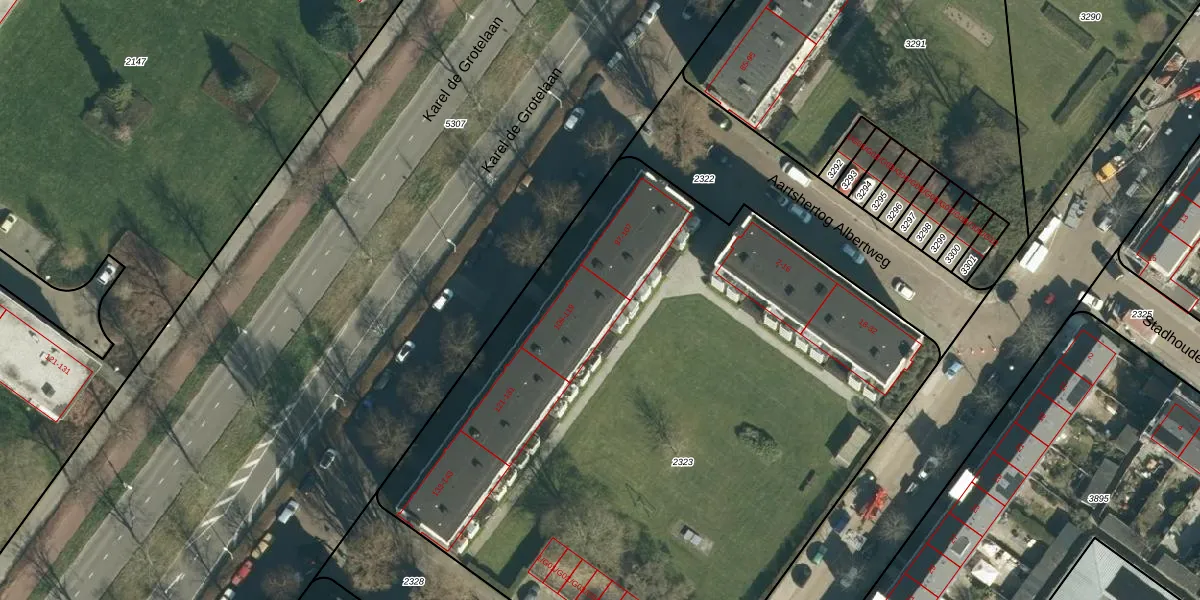 Karel de Grotelaan 113 is gelegen op kadastraal perceel GTL01D2323. Deze kadastrale aanduiding is uniek en wordt gebruikt door het Kadaster om eigendomsrechten en andere zakelijke rechten vast te leggen. Het perceel maakt onderdeel uit van de kadastrale gemeente Gestel.