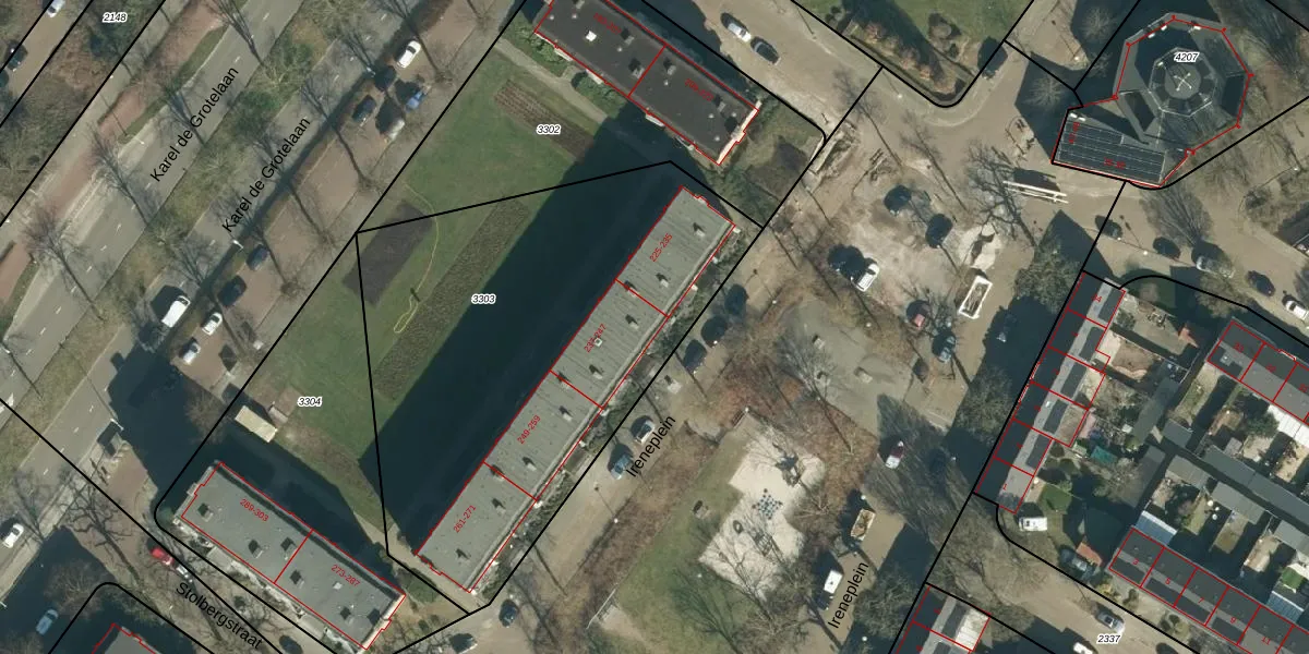 Het perceel waarop Karel de Grotelaan 237 staat heeft een oppervlakte van 2492 m². Dit is een zeer groot perceel. De perceeloppervlakte wordt geregistreerd door het Kadaster. Gedetailleerde informatie over de maten van dit perceel kunt u vinden in het rapport Kadastrale kaart met maatvoering van Karel de Grotelaan 237.