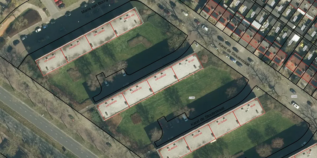 Het perceel waarop Karel de Stoutestraat 111 staat heeft een oppervlakte van 1,4 ha. Dit is een zeer groot perceel. De perceeloppervlakte wordt geregistreerd door het Kadaster. Gedetailleerde informatie over de maten van dit perceel kunt u vinden in het rapport Kadastrale kaart met maatvoering van Karel de Stoutestraat 111.