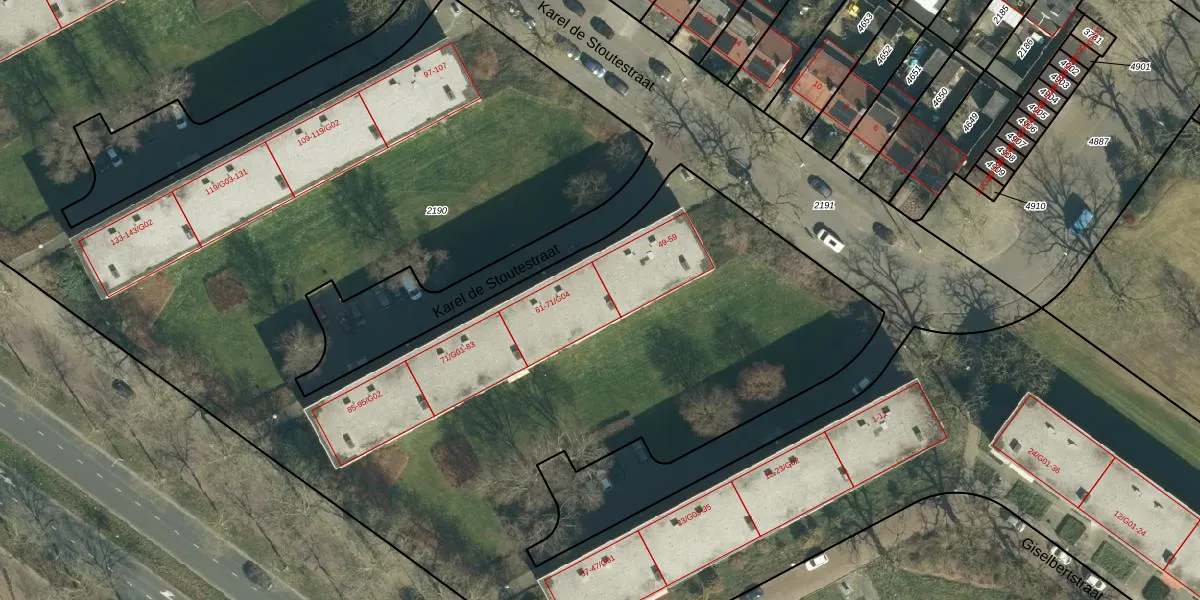 Het perceel waarop Karel de Stoutestraat 65 staat heeft een oppervlakte van 1,4 ha. Dit is een zeer groot perceel. De perceeloppervlakte wordt geregistreerd door het Kadaster. Gedetailleerde informatie over de maten van dit perceel kunt u vinden in het rapport Kadastrale kaart met maatvoering van Karel de Stoutestraat 65.