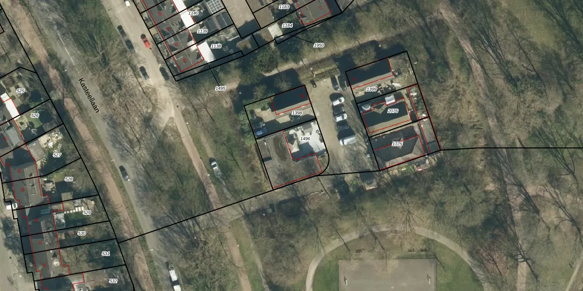 Het perceel waarop Kasteellaan 28 staat heeft een oppervlakte van 400 m². Dit is een groot perceel. De perceeloppervlakte wordt geregistreerd door het Kadaster. Gedetailleerde informatie over de maten van dit perceel kunt u vinden in het rapport Kadastrale kaart met maatvoering van Kasteellaan 28.