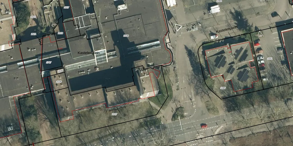 Het perceel waarop Kastelenplein 116 staat heeft een oppervlakte van 2137 m². Dit is een zeer groot perceel. De perceeloppervlakte wordt geregistreerd door het Kadaster. Gedetailleerde informatie over de maten van dit perceel kunt u vinden in het rapport Kadastrale kaart met maatvoering van Kastelenplein 116.