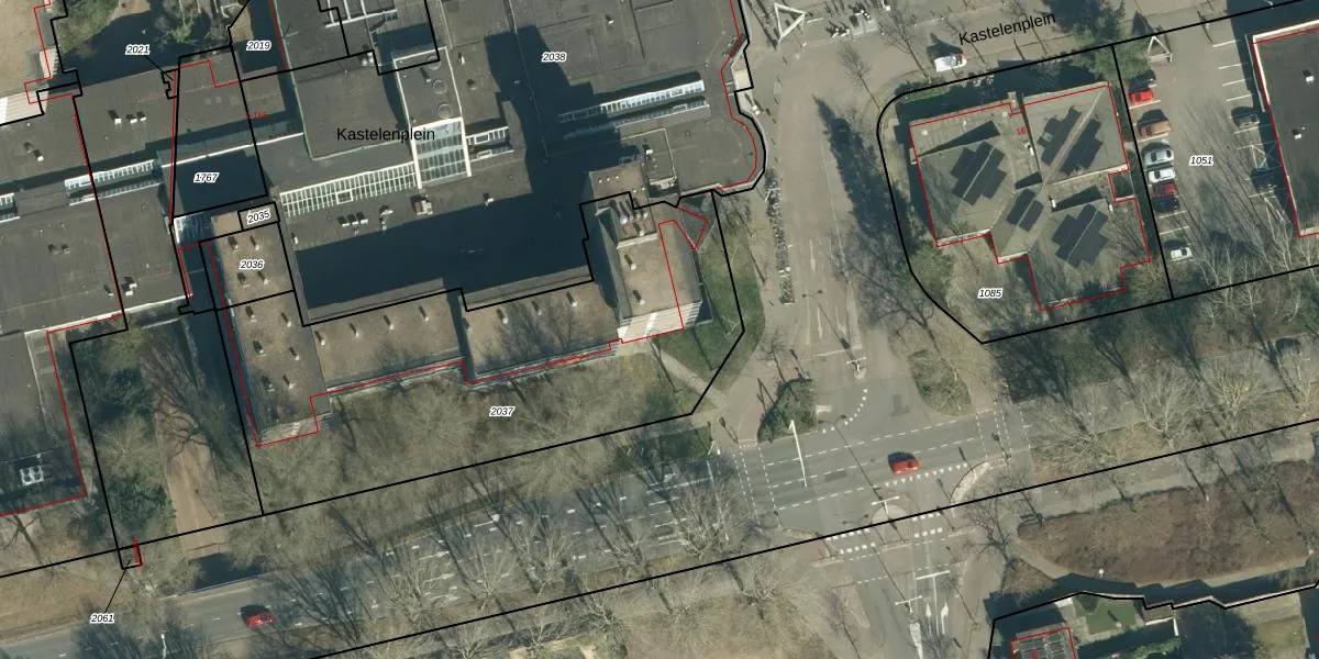 Het perceel waarop Kastelenplein 119 staat heeft een oppervlakte van 2137 m². Dit is een zeer groot perceel. De perceeloppervlakte wordt geregistreerd door het Kadaster. Gedetailleerde informatie over de maten van dit perceel kunt u vinden in het rapport Kadastrale kaart met maatvoering van Kastelenplein 119.