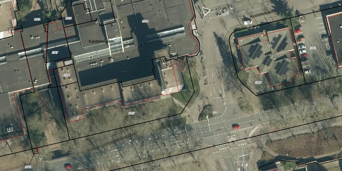Het perceel waarop Kastelenplein 122 staat heeft een oppervlakte van 2137 m². Dit is een zeer groot perceel. De perceeloppervlakte wordt geregistreerd door het Kadaster. Gedetailleerde informatie over de maten van dit perceel kunt u vinden in het rapport Kadastrale kaart met maatvoering van Kastelenplein 122.