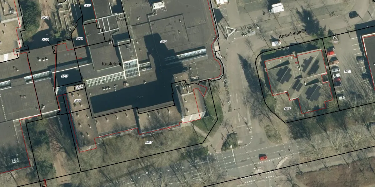 Het perceel waarop Kastelenplein 130 staat heeft een oppervlakte van 2137 m². Dit is een zeer groot perceel. De perceeloppervlakte wordt geregistreerd door het Kadaster. Gedetailleerde informatie over de maten van dit perceel kunt u vinden in het rapport Kadastrale kaart met maatvoering van Kastelenplein 130.