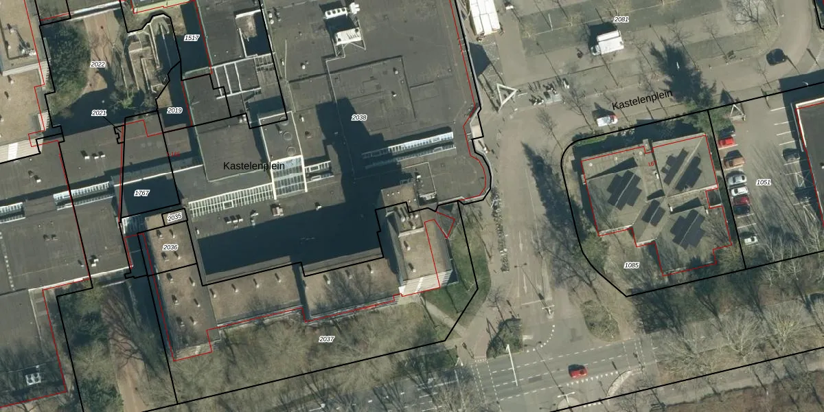 Het perceel waarop Kastelenplein 135 staat heeft een oppervlakte van 4556 m². Dit is een zeer groot perceel. De perceeloppervlakte wordt geregistreerd door het Kadaster. Gedetailleerde informatie over de maten van dit perceel kunt u vinden in het rapport Kadastrale kaart met maatvoering van Kastelenplein 135.