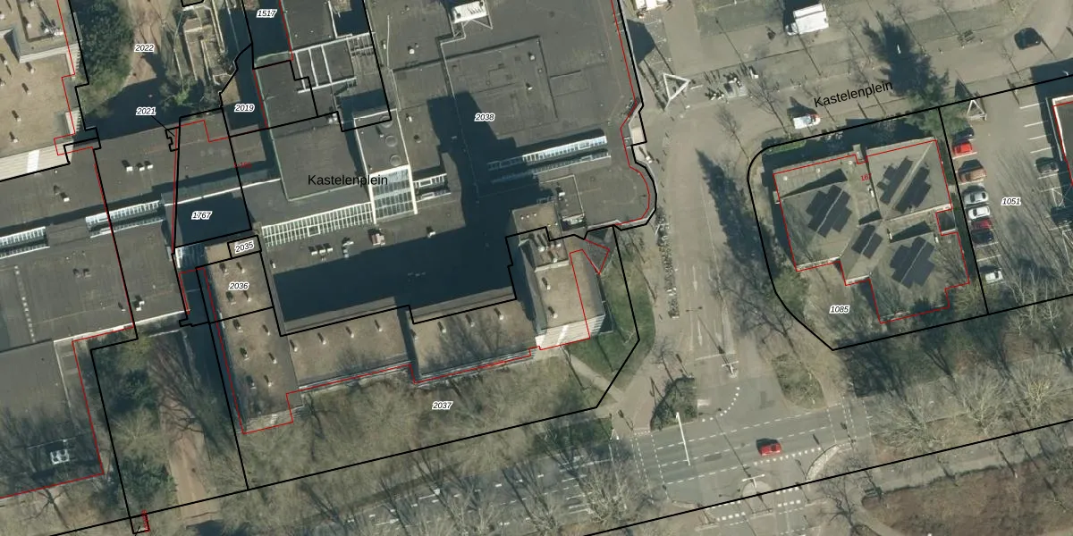 Het perceel waarop Kastelenplein 159 staat heeft een oppervlakte van 2137 m². Dit is een zeer groot perceel. De perceeloppervlakte wordt geregistreerd door het Kadaster. Gedetailleerde informatie over de maten van dit perceel kunt u vinden in het rapport Kadastrale kaart met maatvoering van Kastelenplein 159.