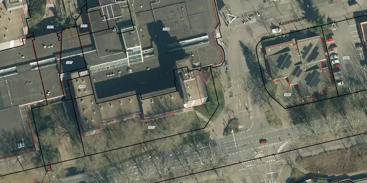 Het perceel waarop Kastelenplein 160 staat heeft een oppervlakte van 2137 m². Dit is een zeer groot perceel. De perceeloppervlakte wordt geregistreerd door het Kadaster. Gedetailleerde informatie over de maten van dit perceel kunt u vinden in het rapport Kadastrale kaart met maatvoering van Kastelenplein 160.